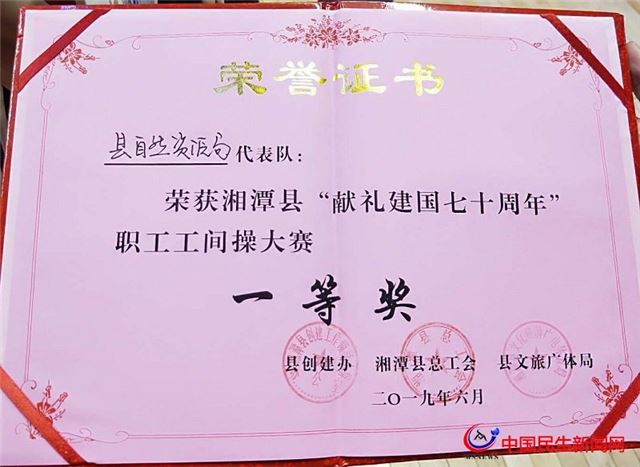 6月26日,湘潭县“献礼建国七十周年”职工工间操大赛在县一中艺体馆举行,湘潭县自然资源局认真组织,积极备赛,经过激烈角逐,喜获一等奖。