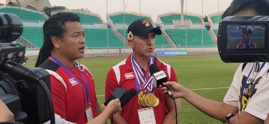 中国女子橄榄球队主教练肖恩接受媒体采访