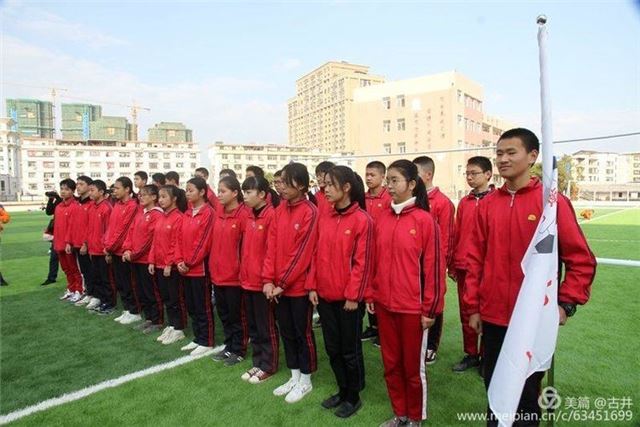 二中足球队旗手意气风发,挥舞队旗