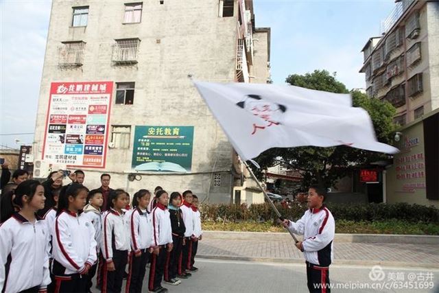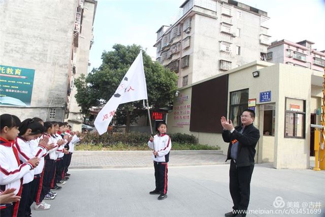六实小足球队旗手展示队旗