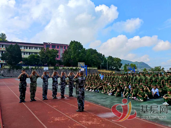 为深入贯彻落实国防教育,提高学生的国防意识,增强学生的爱国主义精神、革命英雄主义精神、集体主义精神,9月8日上午,新化县第十二中学高一新生军训开营仪式在田径场隆重举行。新化县第十二中学党支部副书记李宏辉、常务副校长贺泽雄,吉庆镇党委委员、武装部部长何建红,政教处及高一全体班主任老师参加开营仪式。开营式由政教处主任罗孝友主持。