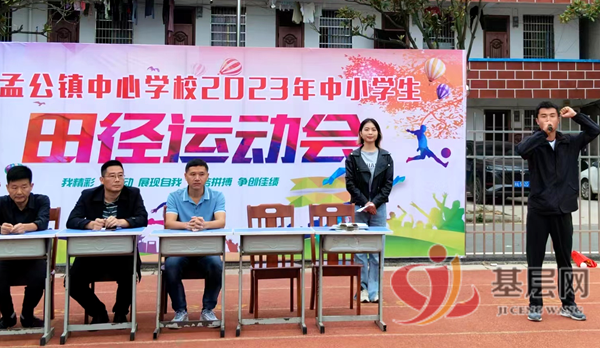 运动会在庄严的国歌声中拉开帷幕,孟公镇中心学校校长助理周峰代表大会组委会对本届田径运动会的胜利召开表示热烈地祝贺!向为筹备运动会付出辛勤劳动的各位领导、老师和同学们表示衷心的感谢!向全体运动员、裁判员,表示诚挚的问候!