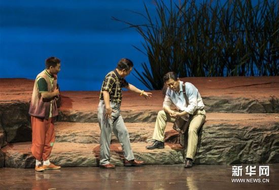 5月26日,演员在楚剧《大哥大嫂》中表演。当日,由湖北省戏曲艺术剧院创作演出的现代楚剧《大哥大嫂》在武汉首演。该剧讲述了围绕乡村换届选举产生的一段亲情故事。