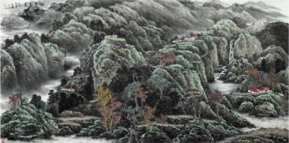 本网讯 (特约记者 田宏霞)这幅画的寓意:是一个恢弘巨制。天上人间流下了涓涓泉水,中间聚宝盆,聚气聚财,山上树木茂密,植被丰厚,背靠大山,路路相通,通向人家,自己的家,风水宝地,无处不在。