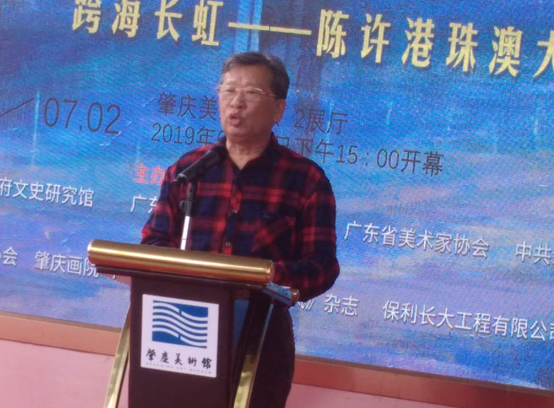 中国报道讯【刘香亭报道】2019年6月25日,“跨海长虹——陈许港珠澳大桥主题油画展”在肇庆市美术馆开幕。这是该批作品继于澳门、珠海、顺德、阳江、东莞成功展出后的第六次开展。本次展览由广东省文史馆指导,广东省文联、广东省美术家协会、中共肇庆市委宣传部、肇庆市文联、广东省文艺研究所、肇庆学院主办,肇庆市美术家协会、肇庆画院、肇庆美术馆承办。