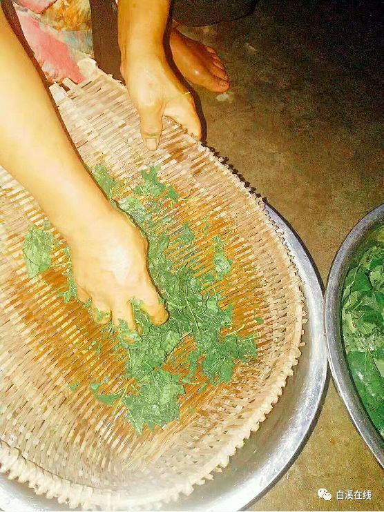 村里的后山上,摘到这种豆腐树叶,只要把它的叶子搓碎拌上沉淀后的地灰水,就可以做出来一碗墨绿如翠的豆腐,俗称树叶豆腐,也叫神仙豆腐,又名凉许(水),而我们鹅溪山里的方言叫:淡谷醉豆腐,这种豆腐比黄豆豆腐更细嫩更光滑,个中滋味意犹未尽。
