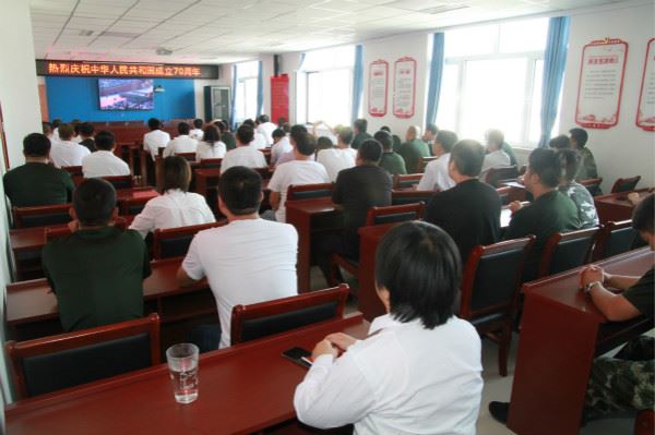 之后,大家来到三楼会议室,观看庆祝新中国成立70周年阅兵仪式。