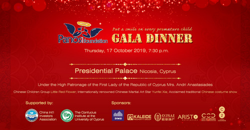 由塞浦路斯中国国际投资者协会CIIA倾情呈现,塞浦路斯大学孔子学院支持,塞浦路斯第一夫人安德里·阿纳斯塔西亚德斯支持并且讲话的“帕诺斯慈善晚宴”,将于10月17日晚7时30分在首都尼科西亚塞浦路斯总统府隆重举办。此次活动善款将捐赠给为早产儿童提供帮助的帕诺斯基金会, 帕诺斯基金会致力于帮助早产后脱离了NICU而需要在人生中面临因早产带来的长期挑战的儿童。晚宴期间中国表演团队以及HERITAGE国际学校乐队,尼科西亚舞蹈团将呈献精彩演出内容。此次慈善公益活动得到了冠名支持单位DMG房产开发集团的爱心捐赠,还得到了其它赞助单位:欧塞地产、阿里斯托开发集团、地中海梦之城集团、科雷德地产集团的大力支持。