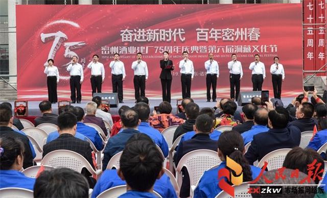 人民日报社市场报网络版山东诸城讯(本报记者 刘炳栋摄影 窦相富、段夕杰、解树义):2019年10月17日上午,山东诸城密州酒业有限公司建厂75周年庆典暨第六届洞藏文化节在密州酒业公司奶儿山密州春固体酿造洞藏酒基地隆重举行。