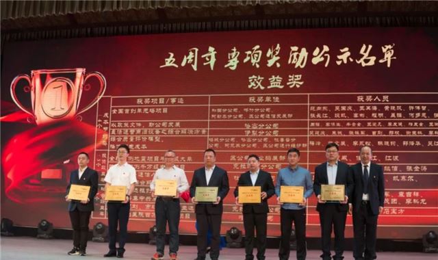 晚会中,新疆分公司班子领导分别为五年来作出杰出贡献的单位和个人进行了隆重表彰,并分别颁发“建言奖”、“效益奖”和“创新奖”。