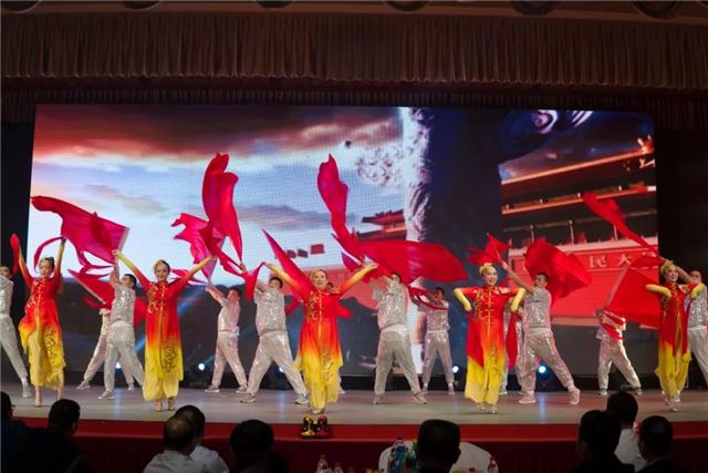 现场彩旗招展,欢歌笑语,气氛喜庆。晚会在新疆分公司主要党委成员集体参加的《我和我的祖国》合唱中推向最高潮,全体人员自发起立,