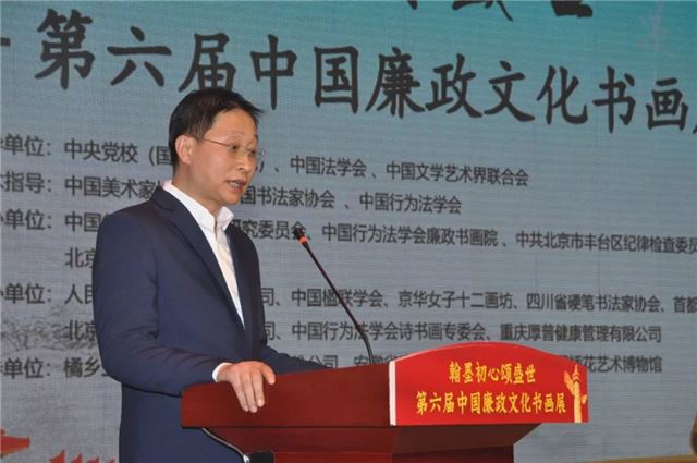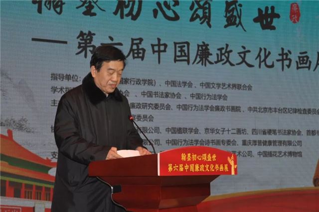 翰墨扬清风,丹青抒廉韵。在第16个“世界反腐败日”到来之际, 由中央党校(国家行政学院)、中国法学会、中国文学艺术界联合会作指导单位,中国美术家协会、中国书法家协会、中国行为法学会作学术指导,中国行为法学会廉政研究委员会、中国行为法学会廉政书画院、中共北京市丰台区纪委、北京市丰台区监察委联合主办,人民日报数字传播有限公司、首都书画院等单位协办的“第六届中国廉政文化书画展”,于2019年12月8日在中国插花艺术博物馆开幕。