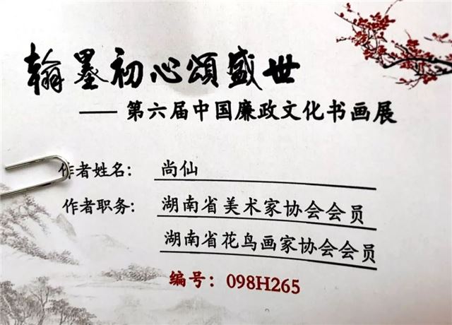 ▲尚仙画作《秋水芙蓉》入选第六届中国廉政文化书画展在京展出