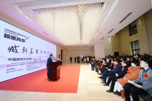 2019年12月8日上午,北京,中国政协文史馆,“翰墨风华——臧新义书法作品展”隆重举行。七届全国人大常委、法律委员会副主任、中国政法大学终身教授江平,国务院参事室原主任、党组书记崔占福,国家新闻出版广电总局原副局长张丕民,中纪委派驻公安部纪检组副组长、武警少将王世安、全国政协办公厅三局局长白煜章、国家新闻出版广电总局规划院原党委书记万顺府、中国科教影视协会党委书记兼秘书长季林、中共驻马店市委常委、宣传部长戚存杰、副部长赖小青、黄淮学院党委书记李国胜、北京市文联原党组书记沈强、北京市残联理事长吴文彦、中国报业协会秘书长袁永君、人民日报社经社部副主任武卫政、国际部原副主任刘水明、研究部原副主任夏珺、广告部副主任李彦彬、高级记者王霞光、国家土地督察北京局巡视员于孔让、国资委法规局局长林庆苗、国务院参事室原办公室副主任陈廷佑、国务院法制办外事司副司长李向东等领导;清华大学艺术史论教授陈池瑜、中国书协理事张铜彦、中华诗词学会副会长王改正、人民政协报社《画界》杂志主编刘根长、金盾书画院院长冯书田、中国科学院文联副主席崔承顺、线装书局副总编郝文勉、《文明》杂志社长娄晓琪等学者;恒源祥集团董事长刘瑞琪、著名武学家邱海洋、《中国税务报》副主编陈顺杨、“茅台专家”李龙杰、谷银基金董事长马刚、盛世维博锐国际公司董事长任登岳、北京智慧能源董事长朱占营等企业界及社会友人;刘艺书法研究会名誉会长秦英君、会长仇加勉,副会长孟云飞、王佃启、陈联合,理事田光辉、庄春明、张晓民等社会各界嘉宾近300人出席了开幕式及书法研讨会。