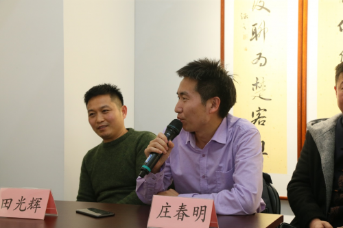 臧新义致答谢辞,他首先感谢所有曾经给予他关心、爱护、支持、提携的师长、领导和朋友。对自己的作品得到那么多的好评与赞赏感到振奋与鼓舞。他表示,正因为书法具有广泛的情感共鸣,使其凝结成为中国人共同的文化情结。而自己作品中蕴含的个人面貌与情感表达,是出自于真心与古人交流,与自己的心灵交流,与时代人文环境交流而生发出来的。最后他用屈子 “路漫漫其修远兮,吾将上下而求索”勉励自己。并表示要坚定社会主义文化自信,有情怀、有担当、有使命感,努力做到“胸中有大义,心中有人民,肩头有责任,笔下有乾坤。”