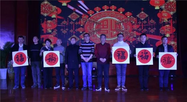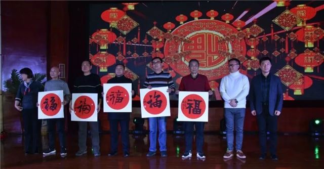 贴“福”字是中华民族辞旧迎新的传统习俗。新年接"福",寄托了人们对幸福生活的向往,也是对美好未来的祝福。著名书画家胡西铭先生,著名书法篆刻艺术家刘鹏先生、著名书法家周小鹏先生等为嘉宾代表送五副“福”字,象征着五福临门。