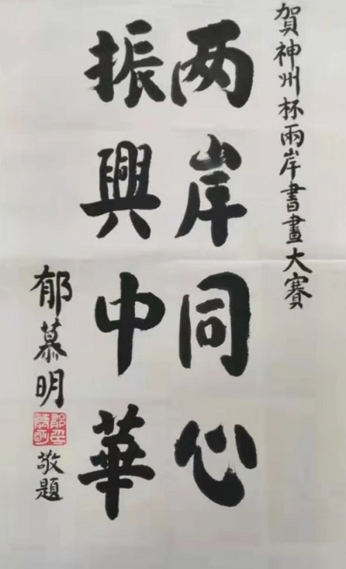 图:台湾新党主席郁慕明题词两岸同心振兴中华