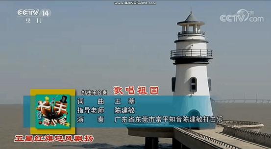央视少儿频道播出的是庆祝澳门回归20周年特别节目《盛世莲花开》。当打击乐节目《歌唱祖国》亮相时,台上鼓声激越,台下红旗飞扬,浓烈的现场气氛把节目带入高潮,成为节目一大看点。表演该节目的小鼓手共有27名,他们身穿迷彩服,系上红领巾,在指导老师的带领下,合着音乐节奏,尽情投入到击打表演中。小鼓手们全都来自我镇一支打击乐队,年龄最小的只有6岁,最大的也不过 13岁,乐队领队是东莞市著名的打击乐音乐人陈建敏。作为参演的粤港澳大湾区代表,他们用精彩的鼓艺表达了庆祝澳门回归20周年的喜悦之情,用铿锵有力的鼓声展示了新时代少儿的精气神。
