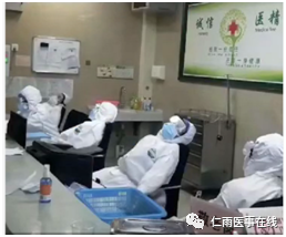 长时间的劳累他们真的很累,在战斗的间隙他们来不及更换衣服,他们就着工作的桌椅睡着了。这个时候我多想变成一朵朵浪花,好把他们轻轻地轻轻地摇一摇,好让他们好好地好好地睡上一觉。