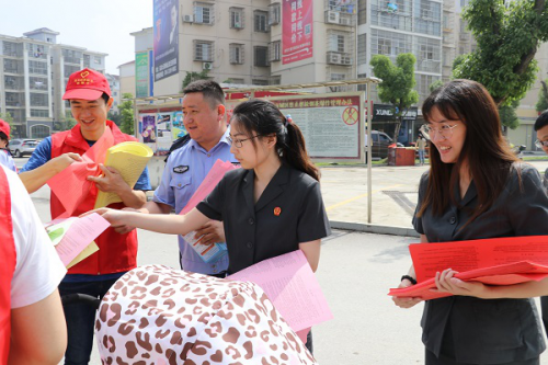 5月26日上午,湖南岳阳市云溪区人民法院“送法进村”宣传志愿者团队在松杨湖街道开展农村法治宣传教育月活动。