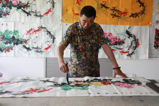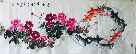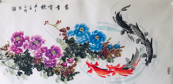 2020年6月8日上午9点,9频道的记者们来到了杨永峰老师的办公室 ,进门时,我们看到,风水鱼,牡丹,山水,各式各样的字画令人眼前一亮,梅兰竹菊高风亮节,富贵牡丹鲜艳亮丽,风水鱼暗藏乾坤。