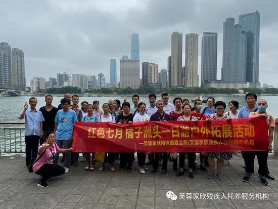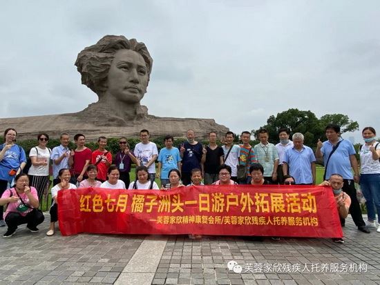 二零二零年七月一日是中国共产党成立99周年的纪念日。毛主席就读第一师范时,常与同学到洲头搏浪击水,探求真理。他在此挥就了脍灸人口的诗篇《沁园春·长沙》,开篇就写到“独立寒秋,湘江北去,橘子洲头。”为庆祝这一伟大的历史时刻,芙蓉家欣心翼精神康复会所暨芙蓉家欣残疾人托养服务机构今天来到了这里,开展了“红色七月,橘子洲头一日游”户外拓展活动,通过听红色故事、唱红色歌曲等形式表达了残疾人士对党和政府的感激之情,歌颂党的丰功伟绩。