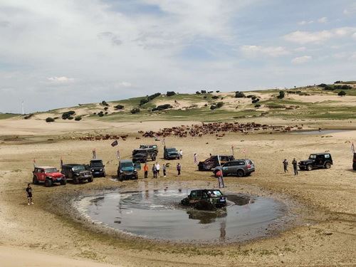 随着发车仪式的结束,车友们正式开始“放飞克什克腾”穿越之旅。浑善达克沙地、白音珠日和草原、查沐罕、达达线、喜鹊沟、翻越了大兴安岭最高峰大鹅头,黄冈梁林海。7月的克什克腾水量充盈,草原保护得力,漫山遍野的绿色,在不知名的各种颜色小花的映衬下,蓝天白云、车队、牛羊、上演别具一格的大草原。越野车在草原非铺装路发挥了性能,沿着牧民道一览草原风光,值得一提的是四百多辆越野车人人自觉、车车遵守约定——“不破坏草原”在领队的带领下,有条不紊的“野”起来。