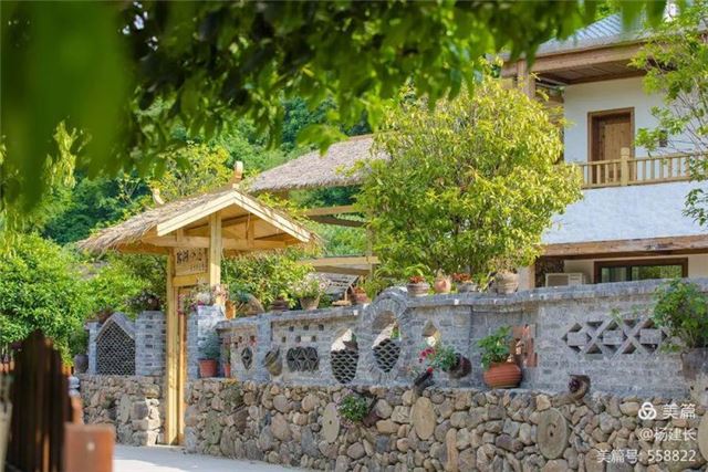 当我再一次站在它临街大门向里边眺望时,莫言醉的背影正缓缓拉长。我仿佛从石板路里倾听到了历史留下的回声,风在耳畔哼唱着音韵深沉的小调。远方,山林戴着白云,在民宿的门口一坐千年。仰望着深邃的苍天,在永恒与伟大的存在之下,我不禁有了一份渺小真切的感动。有词云: