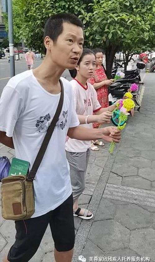 八点二十,事先分好的三个小组由老师带领来到指定地点开始进行义卖。每个组员都竭尽全力,见到了路人就上前介绍:“我们是爱心组织机构,这是我们残疾人手工制作的,您献个爱心,七夕节买一朵送亲人吗?”虽然会员们努力推销,很多路人都挥手拒绝,有的看到我们直接快速走开,有的瞟了一眼就转移视线,但家欣的小伙伴们始终没有泄气,而是努力锻炼自己口才继续售卖。功夫不负有心人,终于在苦心经营下,一位爱心人士被我们的坚持深深打动,毫不犹豫地购买了2朵玫瑰花,付款时还面带笑容。这一善举的意义非凡,对我们来说不仅仅是卖出去了2支花,而是帮助会员们感受到了社会中对残疾人士的关爱。善良是一朵花,美丽而芬芳;善良是一首歌,美妙而动听。家欣的会员们乘胜追击,接着卖出了一朵接一朵,突破了零的记录。