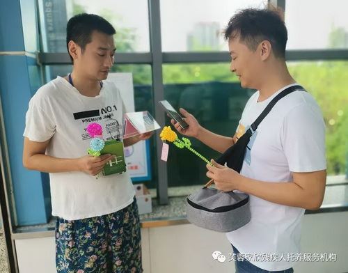 美丽的串珠玫瑰花是家欣托养对象日常精心制作的手工艺品。金风玉露一相逢 , 便胜却人间无数。转眼间到了七夕,芙蓉家欣心翼精神康复会所暨芙蓉家欣残疾人托养服务机构组织托养对象来到锦泰广场地铁 2 号, 3 号, 4 号口进行串珠玫瑰花爱心义卖,希望能借此活动提高会员们的语言表达水平、人际交往技巧、社会适应能力。