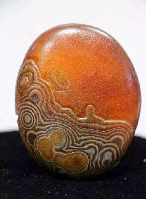 马达加斯加马料,受火山爆发燃烧产生的热容克以外,她还受到大气层的爆炸燃烧产生熔壳,但最有特色的就是圈眼玉髓玛瑙,是表面具有一些同心圆带纹理结构的玛瑙。圈眼玉髓的每一组同心圆带的纹理一般都是两种颜色自内向外交替排列的,很像动物圆圆的眼睛。同一颗圈眼玉髓玛瑙的表面常常密布着许多大小不一的圈眼,有时还会出现双心的,多心的和重叠的圈眼。在太空中运行的二氧气硅层状壳核构造熔球,如果其外壳比较软或者构造层较密,内核液熔体较多,粘度较大,则当球体遭到砂尘暴撞击后,每一个撞击点都将在球面上作往复振动,那么,在球面波的作用下,就会在球壳的表层建造出各个撞击点为中心的局部性的小球面层状构造,冷却为固相后就形成了圈眼玛瑙玉髓瑙。从玉髓的形成原理方面来说,环带玉髓玛瑙,条带玛瑙和树纹玛瑙都是圈眼玉髓玛瑙的极端形成和特殊形成。所以带慧眼的玉髓、玛瑙及其珍贵,而且又富有同陨石一样有着高能量,这种慧眼还是人工无法复的。这种又经过大气层燃烧的天眼天珠不仅具有天然宇宙强烈的磁场能量,其磁场为水晶的三倍,而其中″镱”元素的磁场相当强烈,因些自然传奇天珠被视为最好也就是最珍贵的护身符,自古就被赋予驱魔辟邪、消除业障、防止瘟毒等种种奇效。