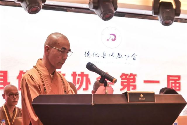 新当选会长传振法师致辞表示,德化县佛教协会理事会全体成员,今后将在各级党委政府的领导下和上级佛教协会的指导下,发扬佛教优良传统,倡导人间佛教思想;爱国爱教,主动坚持佛教中国化方向;加强团体建设、道风建设、人才建设,引导信众正信正行;努力挖掘佛教文化内涵,积极开展对外友好交流。