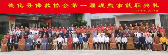 2020年10月13日,泉州市德化县佛教协会第一届理监事就职典礼在德化圆满召开。省民宗厅宗教一处相关负责人,泉州市委统战部副部长、市民宗局局长黄景生,市民宗局副局长杨少川,德化县委常委、统战部部长徐明侃,福建省佛教协会常务副会长、泉州市佛教协会会长向愿法师,福建省佛教协会副会长法一法师、常定法师,副秘书长法度法师、理山法师,福建省佛教协会办公室副主任佛心法师,市县相关单位领导嘉宾以及宗教界有关人士参加典礼。