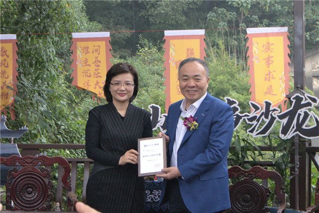 随后,龚艳萍院长、傅胜龙董事长、周文辉教授、左军先生、舒纪铭先生共同为沙龙剪彩,并由龚艳萍院长为傅胜龙董事长授予“后EMBA/MBA导师”的光荣称号。
