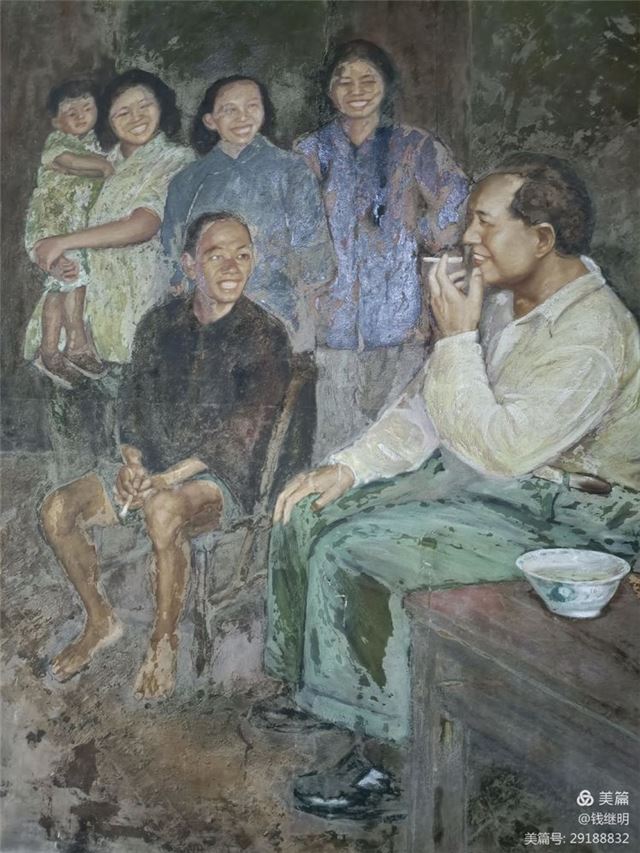 文革期间画家共同创作的油画《毛主席和乡亲们》