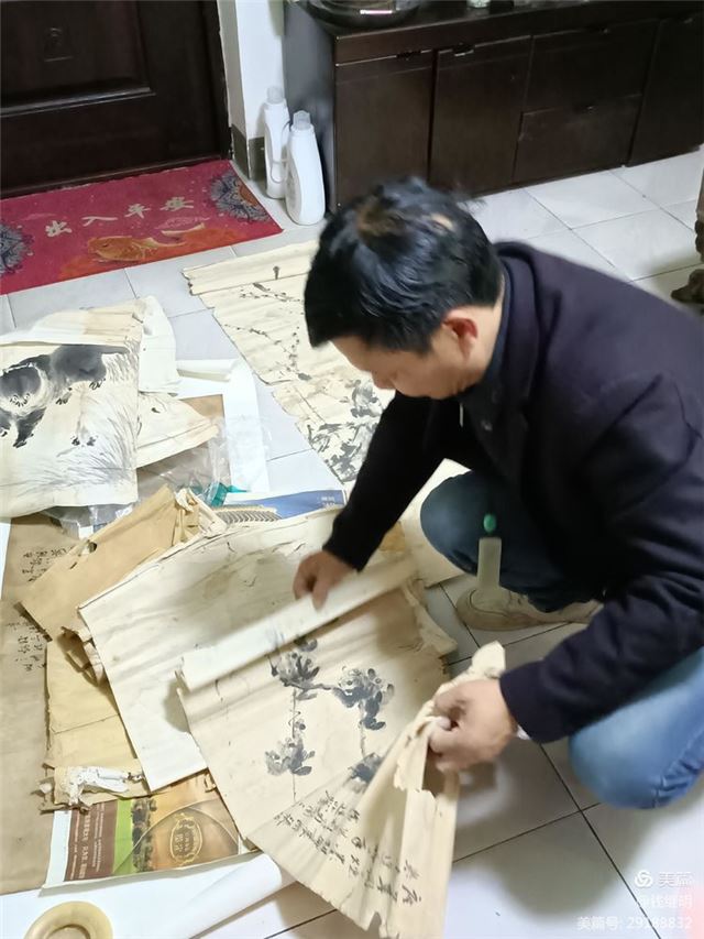一堆纸片摊开在地上让我大开眼界,有晚清湘潭县令真迹,湘军统帅曾国藩、中国佛教协会主席劲道之书法作品,当代著名国画大师关山月的水墨,清代誉满三湘的葡萄大王妙笔以及清代城镇街湘潭首个榜眼的字画,原湖南省书法协会会长的行书汉墨等等。