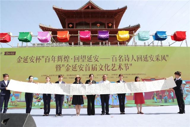 在建党百年之际,为纪念毛泽东发表《在延安文艺座谈会上的讲话》79周年,5月23日,由延安市文化和旅游局、陕西旅游集团延安公司、延安市作家协会、延安大学文学院、《作家报》、西北大学丝绸之路国际诗歌研究中心共同举办的金延安杯“百年辉煌·回望延安——百名诗人回延安”暨“金延安首届文化艺术节”活动在圣地河谷·金延安拉开序幕。