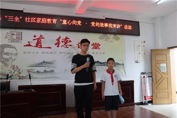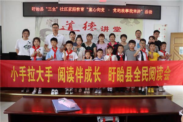 7月6日上午,由盱眙县妇联、盱眙县全民阅读促进会主办,盱眙县盱城镇石牛社区承办的“童心向党,党的故事我来讲”“小手拉大手,阅读伴成长”活动,在石牛社区党群服务中心报告厅举行。30多名儿童和他们的部分家长、兄弟姐妹共同参加了活动。活动由诵读志愿者韩丽娟老师主持。