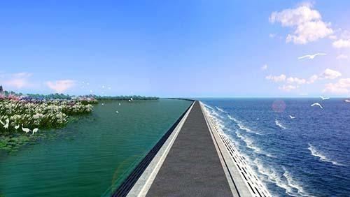 政府投资超10亿元打造的“最美江海岸线”工程配套潜堤工程已开工,潜堤将起到沉降沙石、净化海水的作用,将海水变蓝,在大堤和潜堤之间形成约14平方公里“蓝色海湾”,媲美马尔代夫的“果冻海”。未来还将配套建设约3.5公里白金沙滩、约4公里红树林湿地、约4公里原生态滩涂湿地、亲海观景台、休闲公园广场、生态滨海植被带、休闲漫步道等。