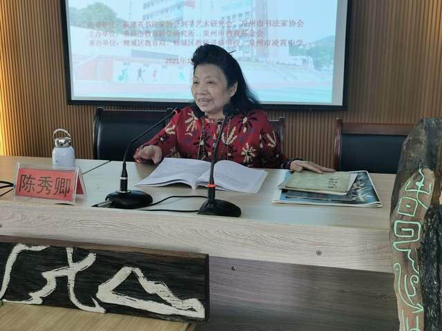 图:中国书法家协会刻字艺术研究会副主任、福州大学工艺美术学院教授陈秀卿在做专题讲座