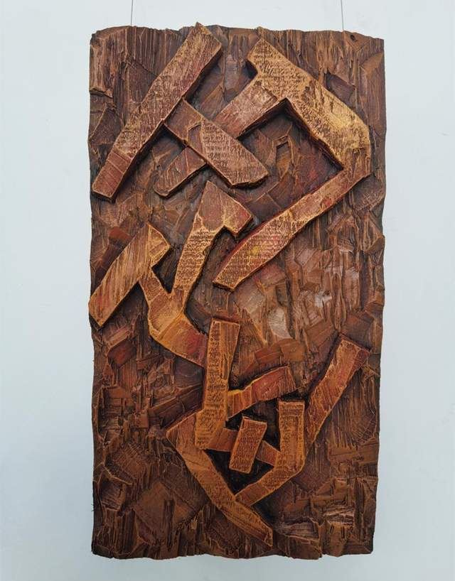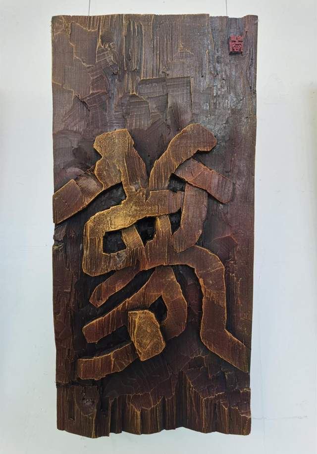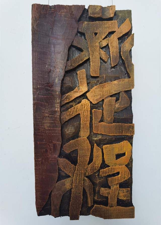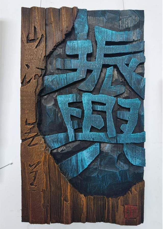 “初心”、“中国梦”、“新征程”、“求是”、“振兴”、“以史为鉴”……,展出作品以十九届六中全会决议中的字词为创作内容,在木板上通过刀法、字法、章法、色彩和肌理等书刻艺术语言创作表现。