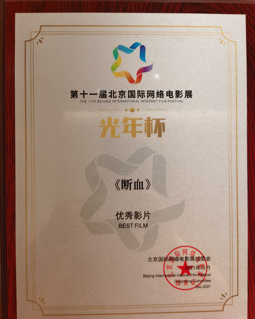 北京讯:记者:韩同瑞 吴丹::2021年12月18日,由鄂尔多斯大路煤化工基地、准格尔旗旗委政法委、准格尔旗旗人民法院、内蒙古疯马文化传媒有限公司联合出品的电影《断血》在第十一届北京国际网络电影展大约两万部参展影片中获奖。