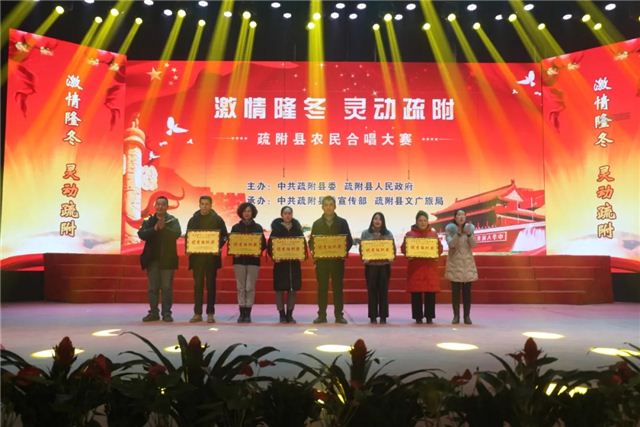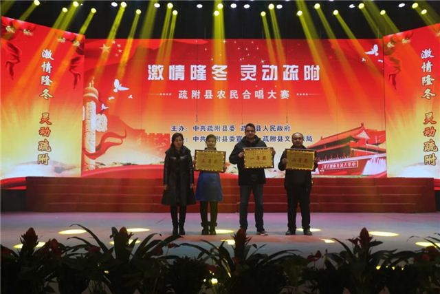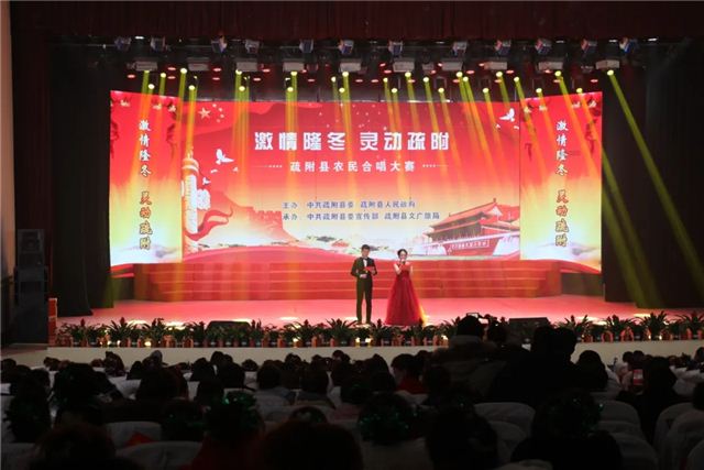 12月29日疏附县举办“激情隆冬•灵动疏附”农民合唱比赛在一首首红色经典歌曲的演绎传唱中激发农民群众永远跟党走和建设美丽家园的奋斗热情。来自各乡镇的10支合唱队身着整齐鲜艳的服装依次登场,各乡镇农民群众以饱满的精神状态,质朴的情感流露,优美的旋律和高亢的歌声,把对祖国母亲的热爱,对建设美好家园的追求,都融入到美妙的歌声中,唱出每一个疏附人的激情、力量、团结和干劲。《没有共产党就没有新中国》、《爱我中华》、《团结就是力量》、《最美的歌儿唱给妈妈》、《我和我的祖国》、《五星红旗》、《母亲是中华》等一首首脍炙人口的红色歌曲,表达疏附县各族人民团结奋进新时代、聚力开启新征程的澎湃激情和“感党恩、听党话、跟党走”的美好心声,全方位展现了疏附县各族群众的良好精神风貌。气势磅礴的歌声、精彩纷呈的表演赢得了现场观众阵阵掌声。