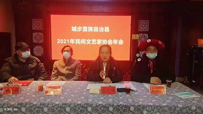 年会活动由县民协副主席胡小明主持,县民协主席杨凯焱首先作了工作报告,指出县民协在县委,县政府,县文联的正确领导下,县民协在抗击疫情,民族团结,脱贫攻坚,民间艺术的传承,推介展演,研究,交流,创新等方面做了大量工作,取得了一定成果,其中杨凯焱主席撰写的苗学论文《城步苗族的未来发展与走势》,《纠风战线老黄牛》,《千年杨府孕育千年文化》,《湘楚屋脊飞山雄,精忠报国的南方杨家将》在国家级刊物上发表获得一等奖和二等奖,与协会副主席胡小明共同撰写的论文《湖南南方杨家将与太极文化起源及其社会影响》惊动整个苗学界,令全国许多著名专家学者赞叹不已,会员丁仁爱先生的"上刀山,下火海"非物质文化遗产是整个邵阳市的亮点文化,吸引中外游客前来观看,促进了当地旅游业发展,会员杨光清是省非物质文化传承人,是一张闪亮的苗族文化名片,又是邵阳市非物质文化遗产木叶吹歌传承人,2018年7月被中国文艺家协会吸收为会员,他对县民间文艺的挖掘,整理,传承和传播做出了突出的贡献。