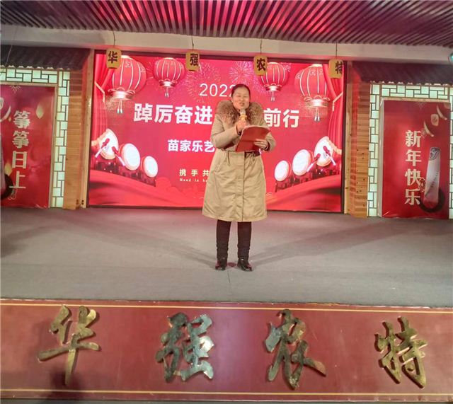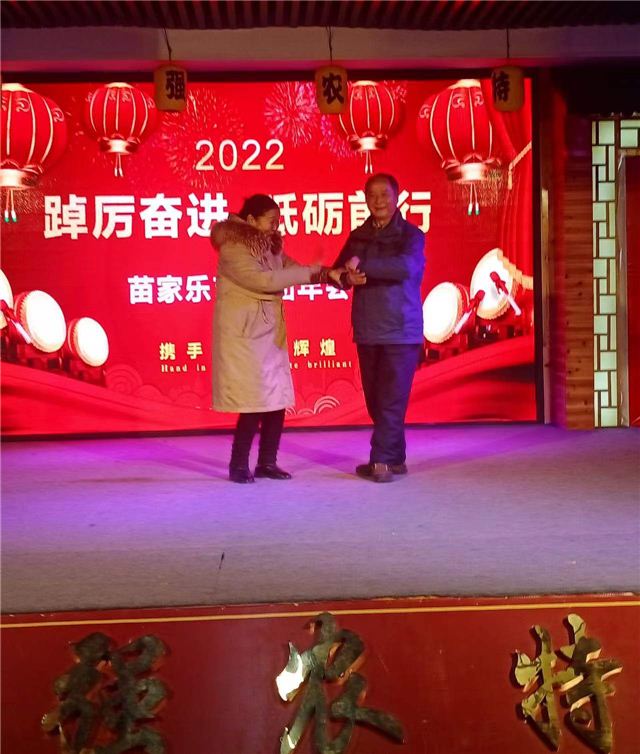 中国基层网讯 (记者 王祥志 )2022年元月23日,城步苗家乐演出有限公司年会总结大会在华强农特店隆重举行,首先该团团长肖回妹总结表彰上一年,战略部署下一年的工作报告,随后丰富多彩的文艺节目开始汇演,演员们倾情奉献,歌舞交融,高潮迭起,拿着国旗,高唱祖国,以饱满的热情抒发了对党和祖国的深情祝福和由衷赞美,肖回妹团长亲自上阵助力,精彩表演,台下掌声连连。