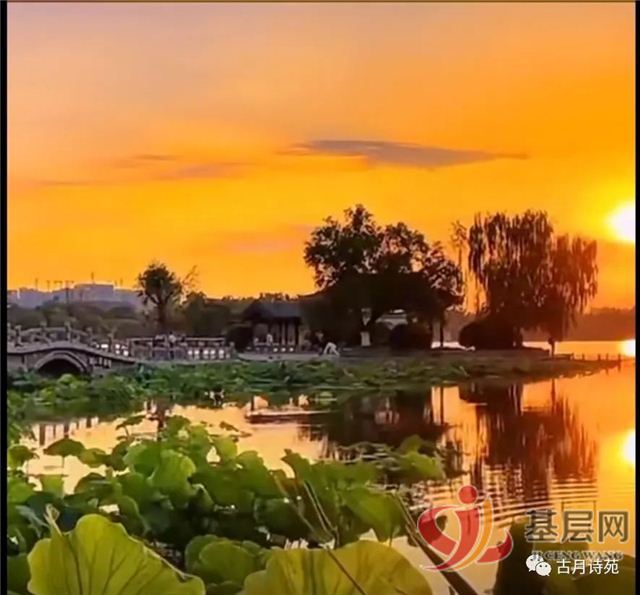 江影晚霞泛碧波,