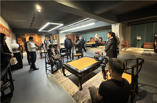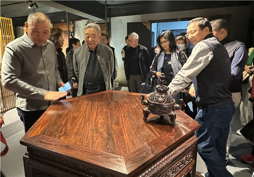 11月8日,由“世界毛纺大王”之称的曹光彪长子、著名实业家、艺术品收藏大家曹其镛夫妇一行19人在宁波市相关领导的陪同下,鉴赏了宁波“嘉木明韵”艺术馆的明式红木家具,从宁波嘉木明韵紫檀艺术馆的近百件家具中,参访团感受了宁波制作的明式家具所蕴含的文化艺术魅力,被作品无与伦比的精湛技艺所震撼,曹其镛夫妇等对“嘉木明韵”的明式红木家具所具现的“精、气、韵”赞美有加。
