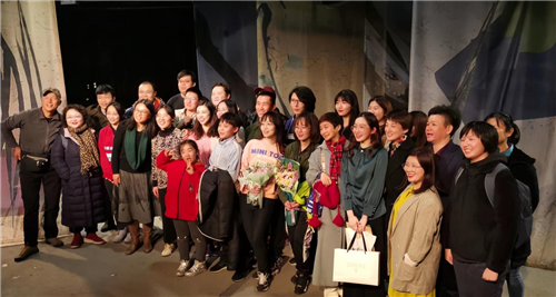 由洪紫千(1排右3)统筹的原创话剧《心尖上的绿孔雀》在北京首演,央视主持人王雪纯(1排右4)、纪录片导演奚志农(1排左1)等嘉宾莅临观摩