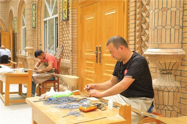 为进一步传承和弘扬中华传统乐器文化,此次文化节还举办了“文物赋彩全面小康、非遗传承健康生活”乐器制作技艺大赛。来自全县近20名乐器制作匠人齐聚一堂,竞相展示各自在乐器制作方面的精湛技艺和独特风格。经过一天的精心制作,一件件精美的乐器在匠人们的手中逐渐成型,成为展示传统技艺的佳作。评委们根据形状、质量、音质效果等方面对作品进行细致评审,最终评选出一二三等奖。“我学习乐器制作已经28年了,主要专注于各类乐器的装饰。”疏附县吾库萨克镇托万克吾库萨克村村民玉苏甫江·居麦表示,他希望通过自己的努力,将这些传统技艺传承下去,让更多人了解和欣赏到中华传统乐器的独特魅力。