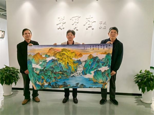 作家洪斌对《千里江山图》及女儿洪紫千怀有深情厚谊,以青绿色调绘就山水佳作,并赋诗一首以表赞美:“纸上江山翠色浓,桃源丽景映心空。辉煌画卷令人叹,游客如痴醉仙宫。”他还特邀书法界泰斗胡茂伟主席为画作题跋,共同庆祝这一艺术的辉煌时刻。